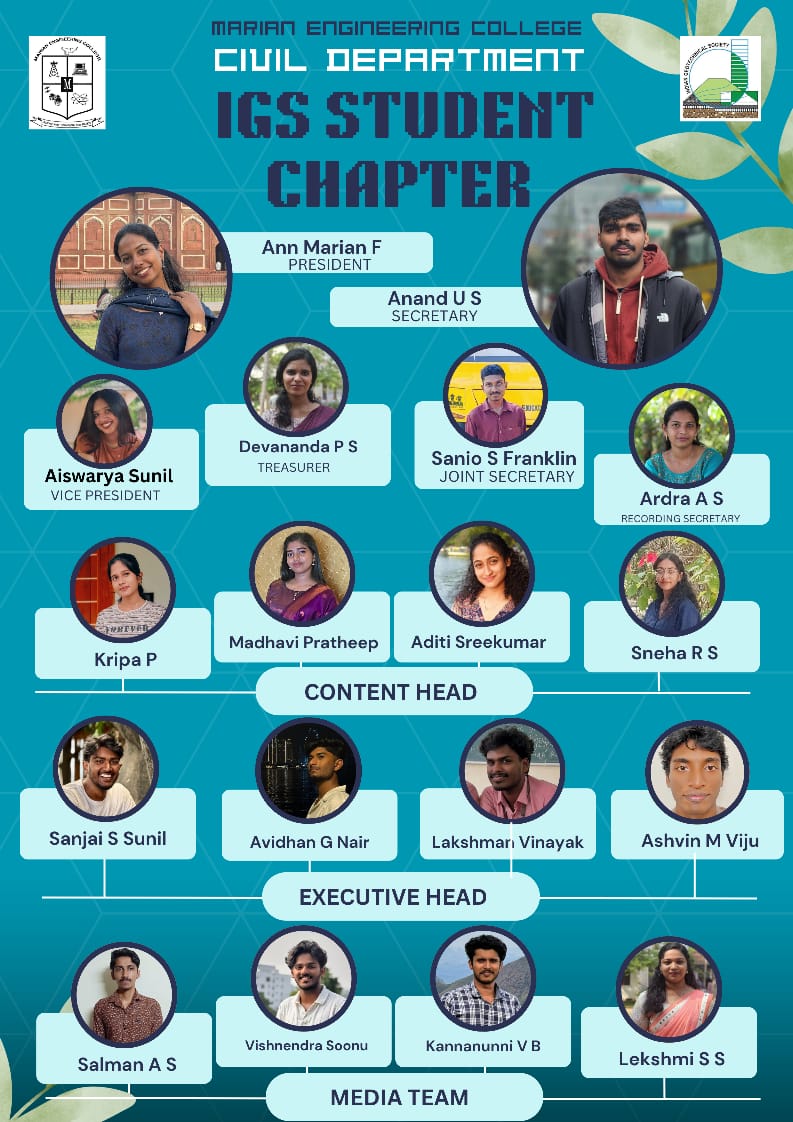 The office bearers of the IGS-MEC Student Chapter (2023-2024) are: