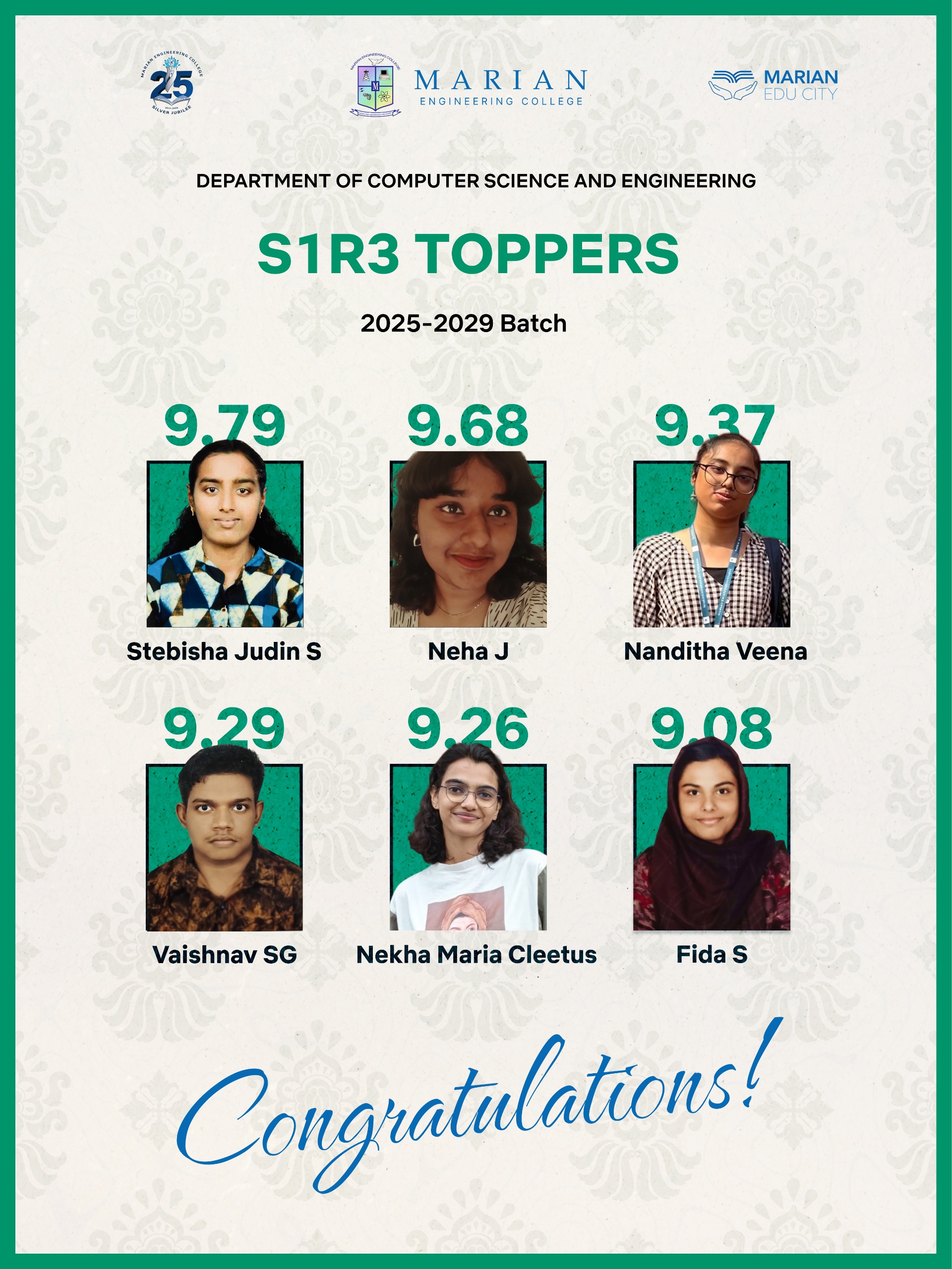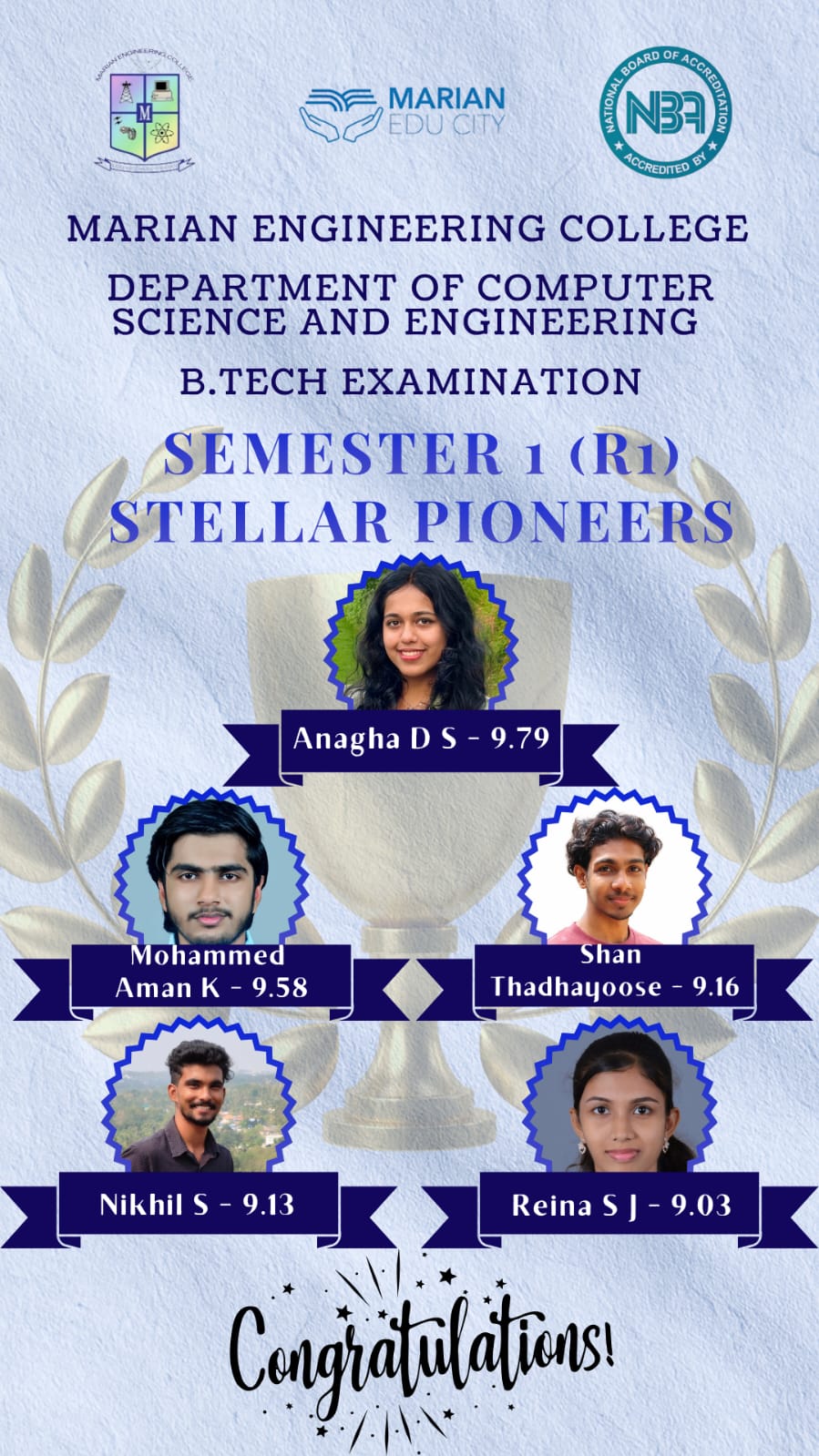 Congratulations to S3 CSE Students those who have scored above 9 CGPA