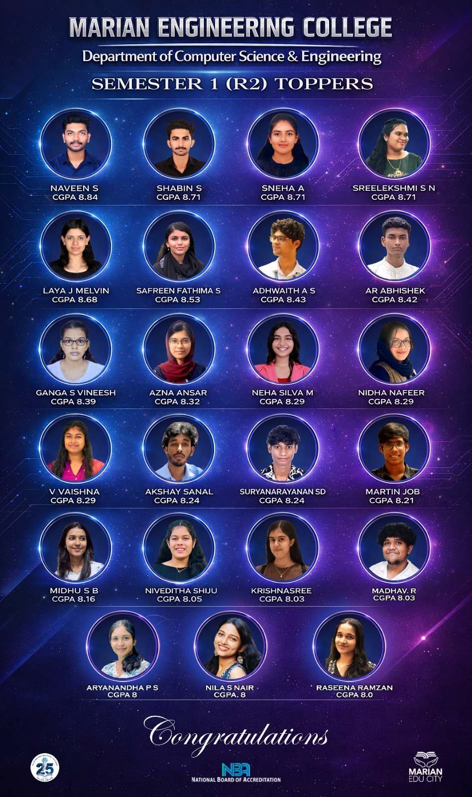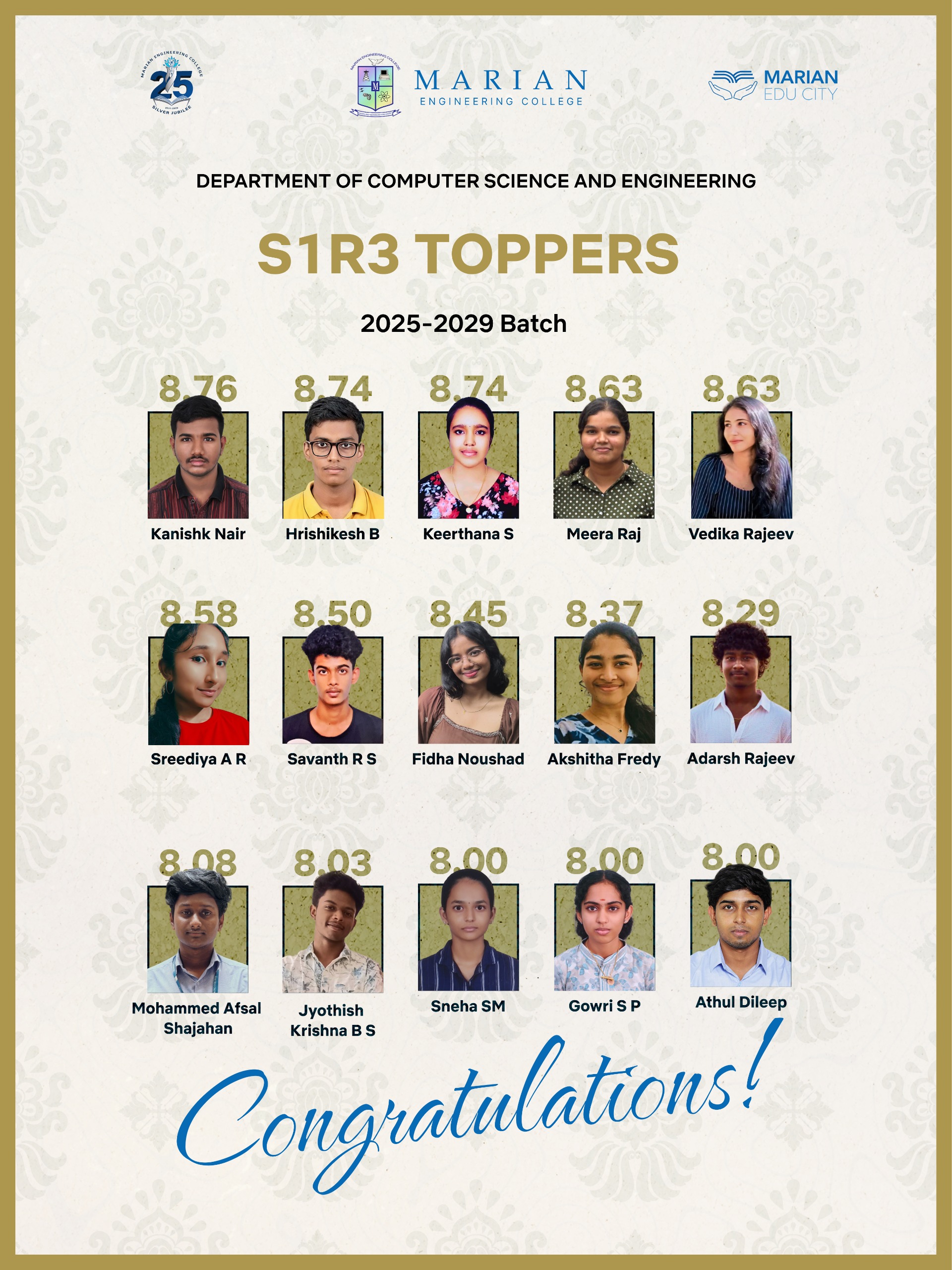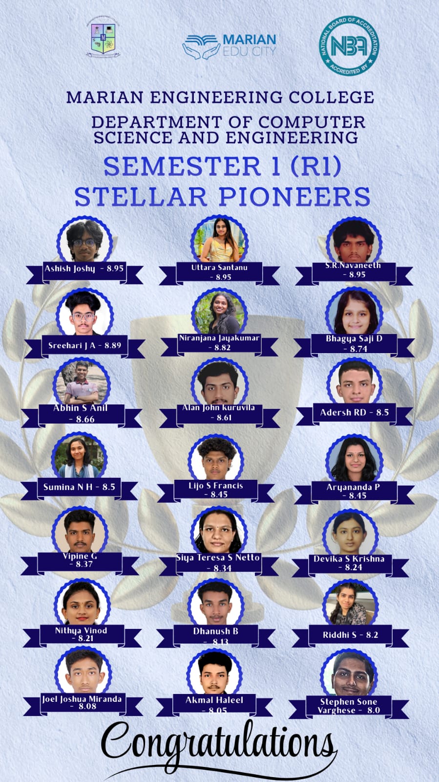 Congratulations to S3 CSE Students those who have scored above 8 CGPA
