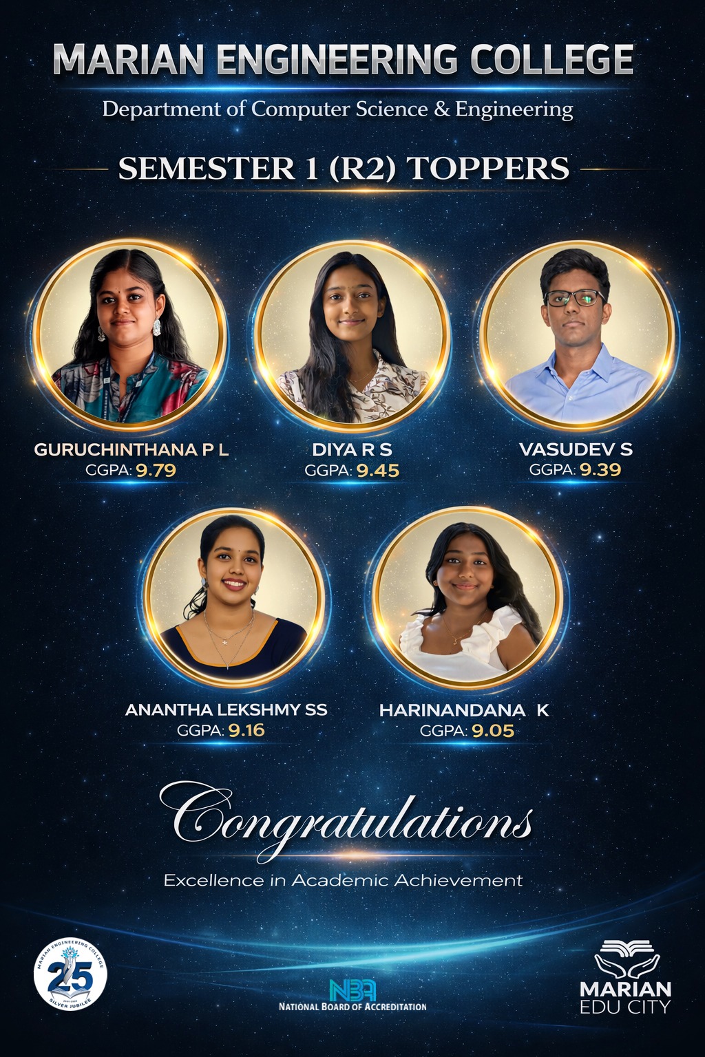 Congratulations to the toppers of the CSE Department 2019- 2023 batch
